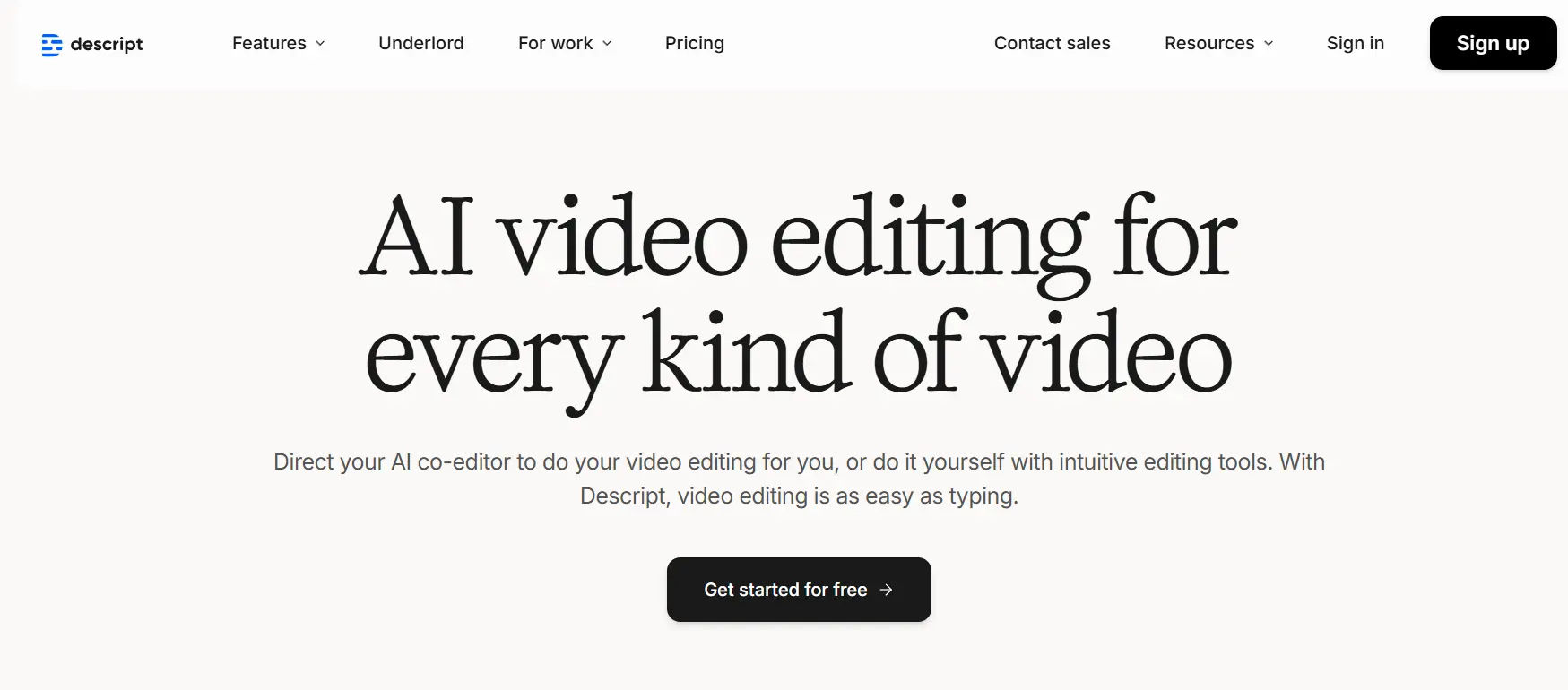 | Descript | Text-based video editing, auto captions, overdub, podcast/screen recording | Podcasters, video editors, educators | Free; Hobbyist: $16/month; Creator: $24/month; Business: $50/month; Enterprise: Custom | Edit videos like text, removing technical barriers and speeding up production workflows. |