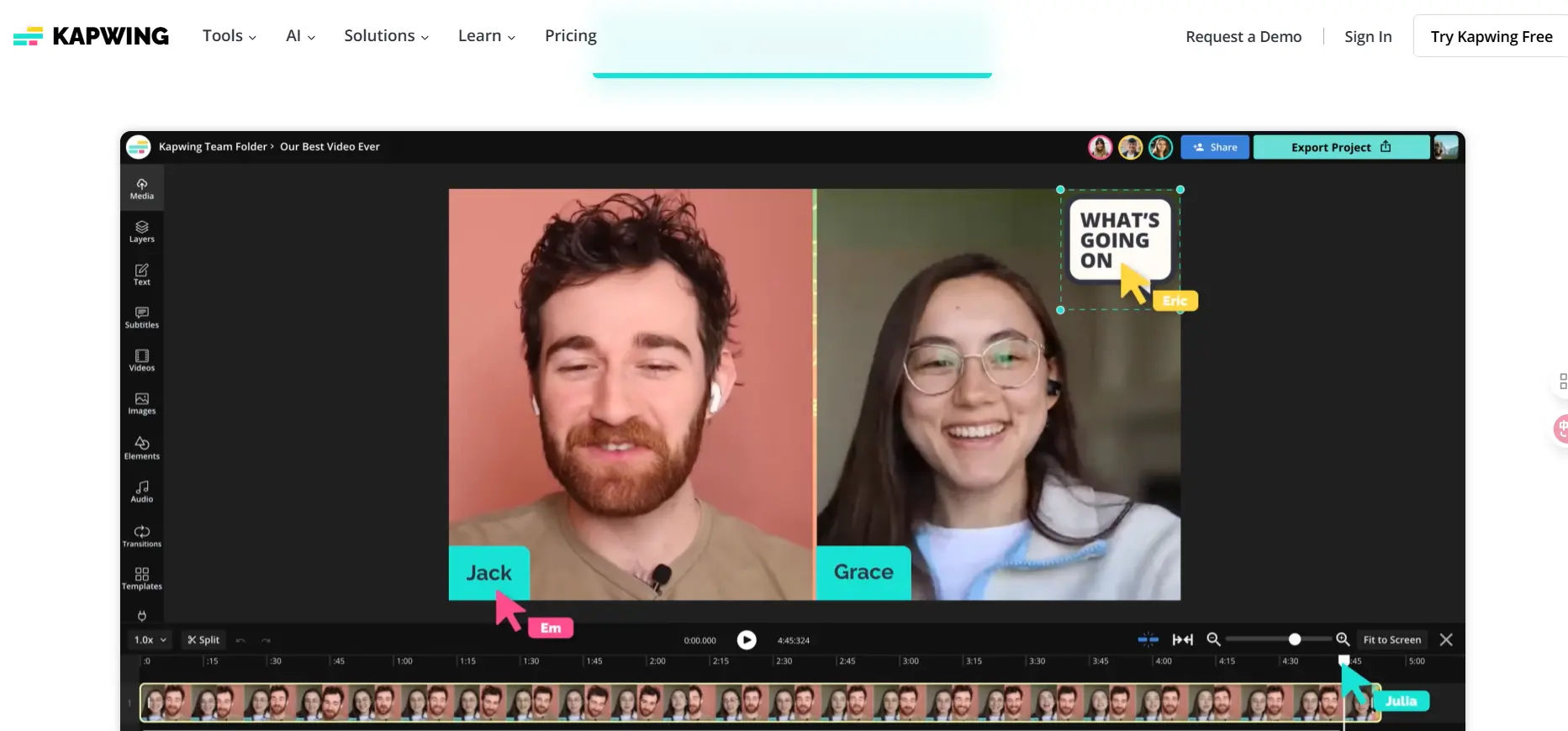 Kapwing is a social media-first editing tool, which can include auto-captioning and meme templates, subtitle styling, and collaborative tools. It allows creators to effortlessly create ready-to-post content on TikTok, Instagram, and YouTube Shorts, which makes it one of the most user-friendly choices of fast-paced digital marketing.